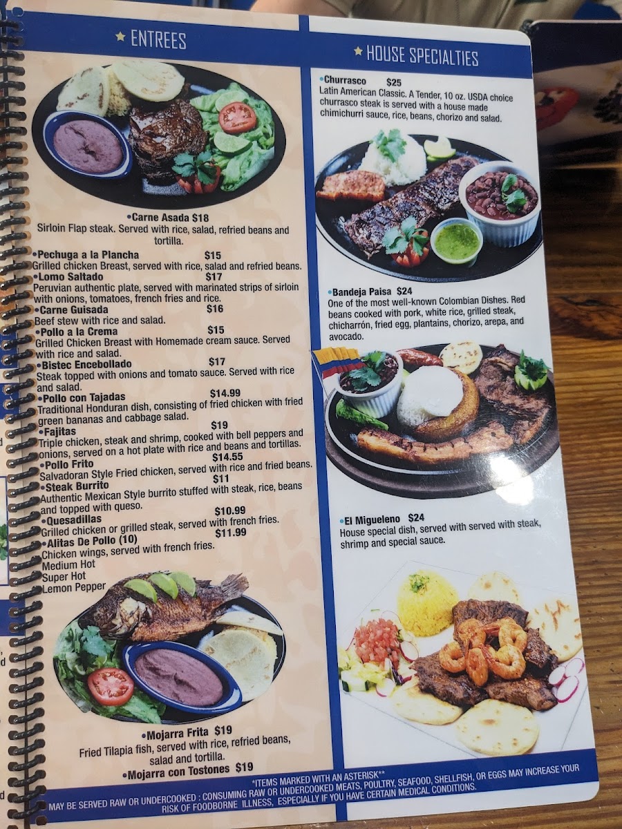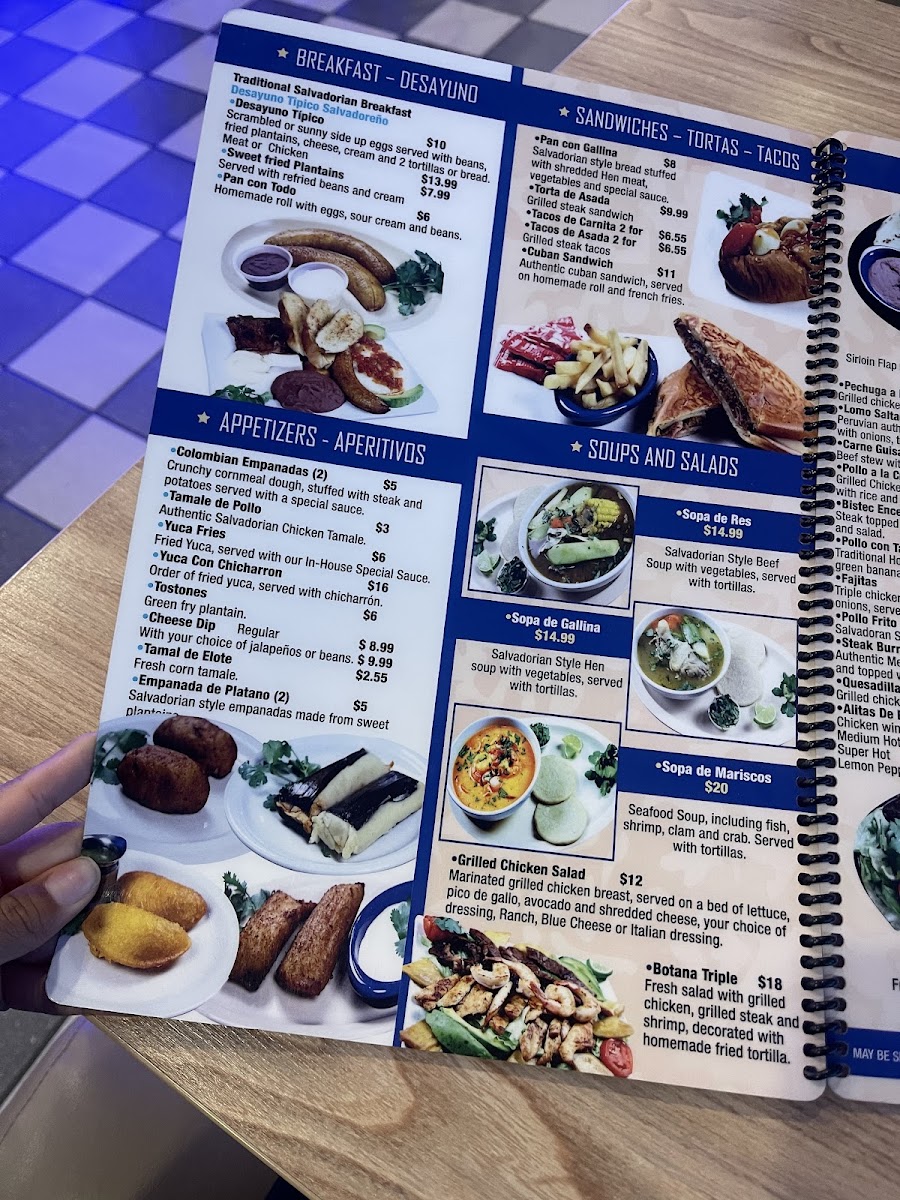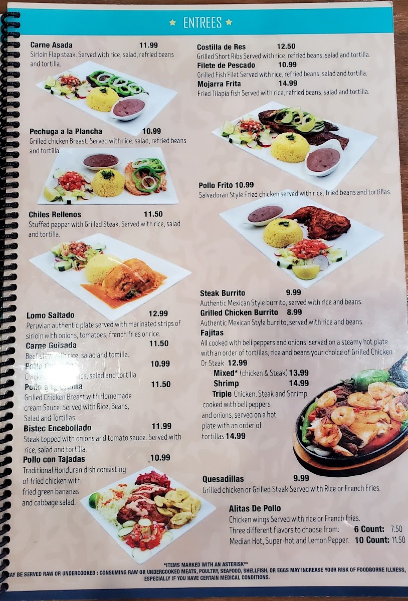 Served with beans, fried plantains, cheese, cream and two tortillas or bread.